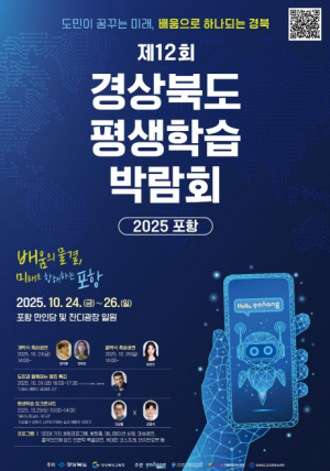 경상북도는 10월 24일부터 26일까지 3일간 포항 실내체육관 및 만인당 일원에서 ‘2025년 경상북도 평생학습박람회’를 개최한다. 올해로 12회째를 맞는 이번 박람회는 평생학습에 대한 인식 제고, 지..