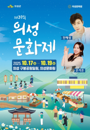 의성군은 오는 10월 17일부터 19일까지 3일간 구봉공원 일원과 의성문화원에서, 의성문화원 주최․주관으로 `제39회 의성문화제`를 개최한다고 밝혔다. 올해 문화제는‘의성, 예술로 놀다!!’를 슬로?..