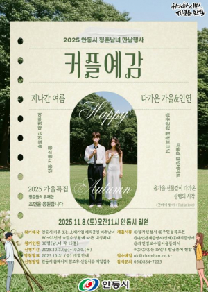 안동시가 청춘남녀의 건강한 만남을 지원하기 위해 마련한 ‘2025 커플예감! 힐링피크닉’ 시즌4 참가 신청을 10월 30일까지 접수한다. 이번 행사는 11월 8일 안동시의 새 명소로 떠오르는 예끼마을 ..