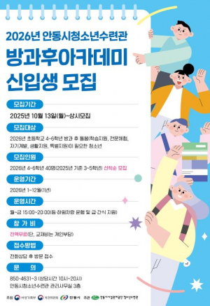 안동시청소년수련관 방과후아카데미, 2026년 신입생 모집