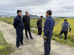 강영석 상주시장, 사벌국면 가루쌀 등 벼 피해 현장 찾아 농가 위로