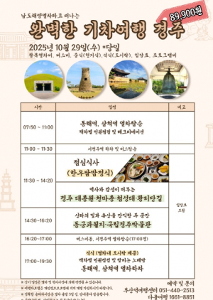 경상북도는 올해 아시아태평양경제협력체(APEC) 정상회의 개최를 기념하고, 동해선을 활용한 동해안권 관광 활성화를 위해 29일 ‘완벽한 기차여행 경주’ 관광전용 열차를 운영한다. 관광열차는 지?....