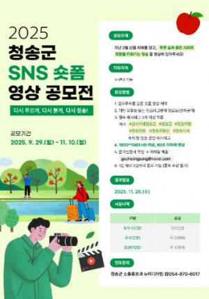2025 청송군 SNS 숏폼 영상 공모전 개최