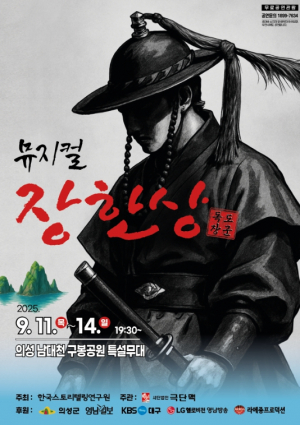 의성군은 조선 숙종 때 울릉도와 독도를 지켜낸 실존 인물이자 지역 출신인 ‘장한상’을 소재로 한 뮤지컬 `독도장군 장한상`을 오는 9월 11일부터 14일까지 오후 7시 30분, 남대천 구봉공원 특설무대?..