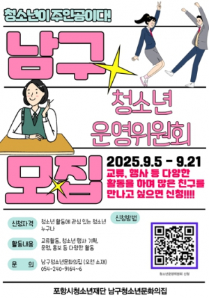 포항시 남구청소년문화의집 이끌어 갈 청소년운영위원회 모집