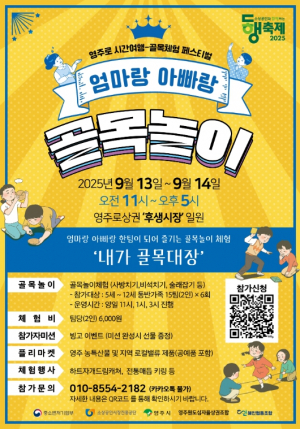 영주시는 오는 9월 13일부터 14일까지 영주1동 후생시장 일원에서 ‘영주로 시간여행–엄마랑 아빠랑 골목놀이’ 체험 행사를 개최한다고 밝혔다. 이번 행사는 중소벤처기업부와 소상공인시장진흥??....