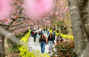 경주 불국사공원 겹벚꽃 ‘절정 임박’…분홍빛 물결 장관