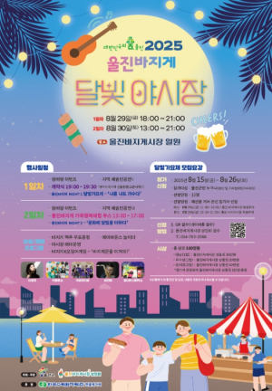 울진군은 8월 29일 울진바지게시장에서‘2025 울진바지게 달빛 야시장’행사를 개최한다. 울진바지게시장 ‘달빛 야시장’은 침체된 전통시장 활성화와 특화된 야간 관광명소 도약으로 울진을 보다....