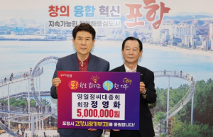영일정씨대종회 정영화 회장, 포항시에 고향사랑기부금 500만 원 기탁