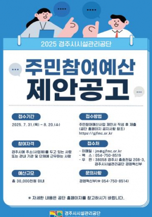 경주시시설관리공단 주민이 직접 참여, 원하는 사업 시행을 위한 주민참여예산 제안 공모