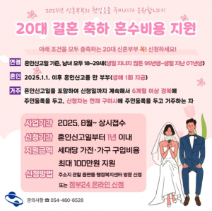 20대에 결혼하면 혼수 100만원! 구미시, 실속 정책 꺼냈다