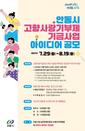 안동시, `고향사랑기부제 기금사업` 전국 아이디어 공모 실시
