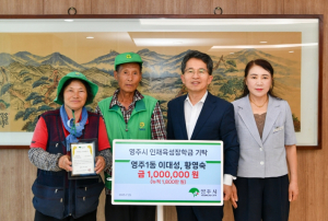 (재)영주시인재육성장학회(이사장 김자여)는 7월 25일, 영주1동 새마을지도자인 이대성·황영숙 부부와 ㈜칠공사로부터 각각 100만 원과 200만 원의 인재육성 장학금을 기탁받았다고 밝혔다. 이대성·황...