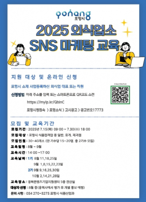 포항시, 외식업소 대상 SNS 마케팅 교육 참여자 모집