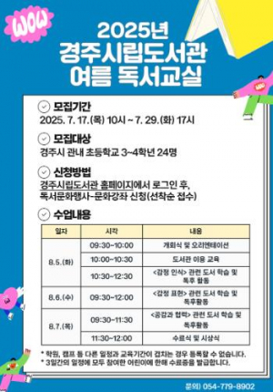 “책과 함께하는 여름방학”…경주시립도서관, 초등학생 위한 ‘2025 여름 독서교실’연다
