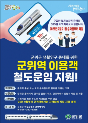 군위군, 군위역 이용객 철도이용비 지원 시행!