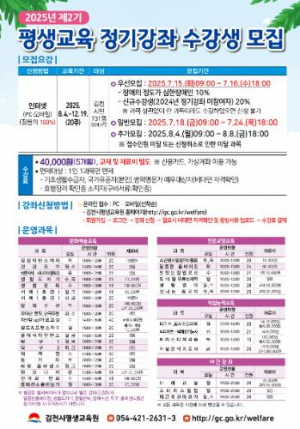 김천시, `2025년 제2기 평생교육 정기강좌` 수강생 모집