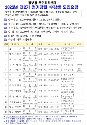 영천시 동부동 주민자치센터, 2025년 제2기 정기강좌 수강생 모집