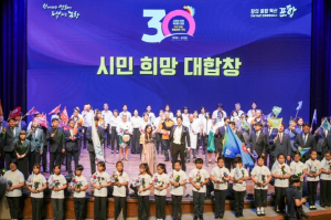 포항시청소년재단 청소년합창단이 지난 1일 포항시와 영일군의 통합 30주년을 기념하고 2025 포항시민의 날을 축하하기 위해 열린 기념식에서 ‘희망 대합창’ 무대에 올라 시민들과 감동의 순간을 ??....