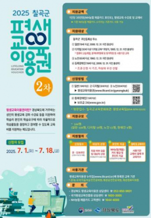 칠곡군, 평생교육이용권 일반 군민으로 확대 지급