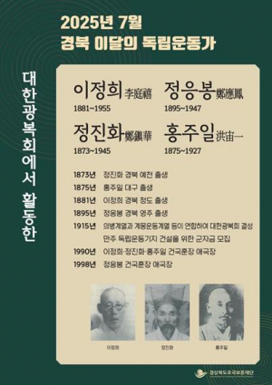예천군 경상북도호국보훈재단 2025년 경북 7월의 독립운동가 이정희·정응봉·정진화·홍주일 선정