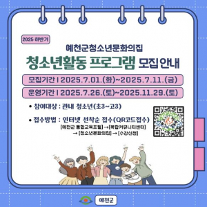 예천군, 여름방학 및 하반기 청소년 프로그램 수강생 모집