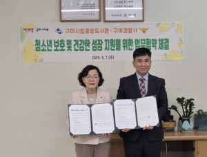 구미시립중앙도서관과 구미경찰서 여성청소년과는 지난 7일 청소년의 정서적 안정과 건강한 성장을 위한 업무협약(MOU)을 체결했다. 이번 협약은 청소년이 보다 안전하고 건강하게 성장할 수 있도록 ....