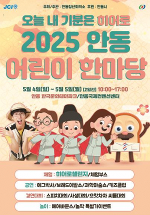 안동시와 안동청년회의소는 제103회 어린이날을 맞아, 오는 5월 4일부터 이틀간 한국문화테마파크와 안동국제컨벤션센터 일대에서 열리는 ‘2025 안동 어린이 한마당’을 방문하는 관람객의 편의를 위?....