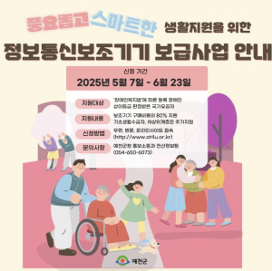 예천군은 정보 취약계층의 디지털 접근성 향상을 위해 2025년 정보통신보조기기 보급사업을 시행한다. 정보통신보조기기 보급사업은 한국지능정보사회진흥원(NIA)에서 주관하여 계층 간 정보 격차 ??....