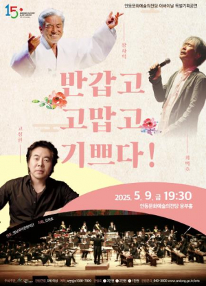 안동문화예술의전당이 준비한 어버이날 특별기획콘서트 ‘반갑고 고맙고 기쁘다!’가 다가오는 5월 9일 19시 30분 안동문화예술의전당 웅부홀에서 진행된다. 이번 어버이날 특별기획콘서트는 다가??....