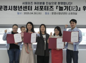문경시청년센터는 4월 30일, 청년센터에서 청년 홍보 서포터즈 『놀기(記)』 위촉식을 개최하고 2025년 활동을 시작했다. 『놀기(記)』는 ‘놀면서 기록하다’는 뜻으로, 문경 청년들의 눈높이에서 ??...