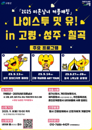 2025 미혼남녀 커플매칭 `나이스 투 밋 유 ! in 고령♥성주♥칠곡` 참가자 모집