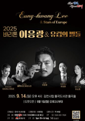 김천시문화예술회관에서는 9월 14일 오후 4시 율곡도서관 율곡홀에서 기획공연 ‘2025 바리톤 이응광 & 유럽의 별들’을 개최한다. 이번 공연은 김천 출신의 세계적인 바리톤 이응광과 국내·외 정상...