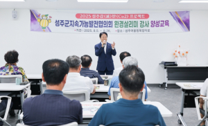 성주군에서는 8월 26일 성주어울림복합타운 2층 문화강좌실에서 성주군지속가능발전협의회 회원 25명이 참석한 가운데 『환경살리미 강사 양성교육』의 마지막 일정을 마무리하며 교육과정을 수료??....