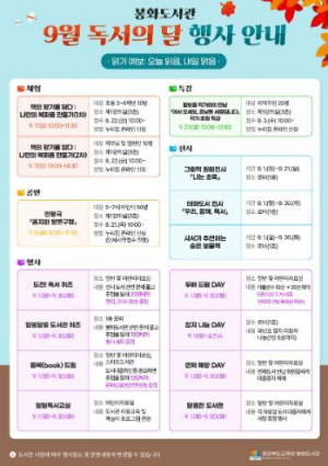 봉화도서관 책과 함께하는 9월, 독서의 달 행사 운영