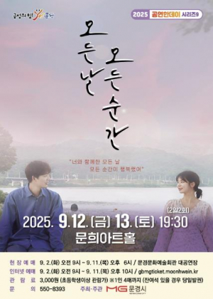 문경시는 우리의 일상을 되돌아보고 삶의 소중함과 사랑을 일깨워줄 연극 ‘모든 날 모든 순간’을 오는 9월 12일과 13일 오후 7시 30분(이틀간 총 2회) 문희아트홀에서 개최한다. 연극‘모든 날 모든..