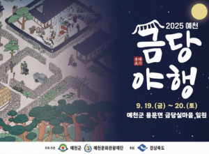 (재)예천문화관광재단은 이달 19일부터 20일까지 이틀간 예천군 용문면에 위치한 금당실전통마을에서 ‘2025 예천 금당야행’을 개최한다. ‘2025 예천 금당야행’은 대한민국 십승지 중 하나인 금당실?..