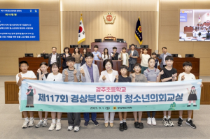 경상북도의회는 9월 1일 본회의장에서 경주초등학교 학생 18명이 참 여한 가운데 『제117회 경상북도의회 청소년의회교실』을 개최했다. 경주초등학교 5~6학년 학생들은 각각 의장과 의원 등 1일 도의...