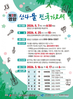 영양군, `숨은 가왕(歌王) 다 모여라!` ‘제3회 영양 산나물전국가요제’ 참가자 모집