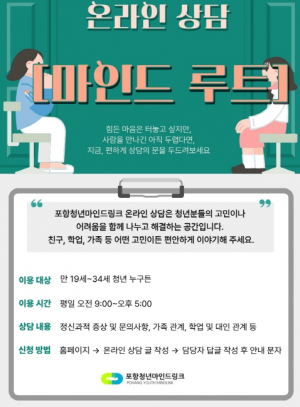 포항청년마인드링크, 청년 마음건강 위로 온라인 상담 운영