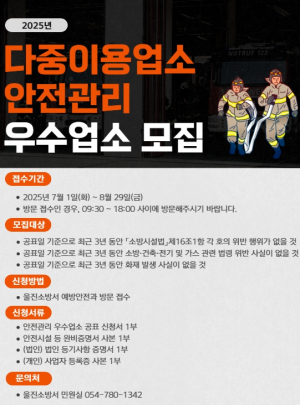 울진소방서, ‘2025년 다중이용업소 안전관리 우수업소’ 신청 접수…8월 29일까지