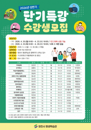 영천시 평생학습관, 2026년 상반기 단기특강 수강생 모집