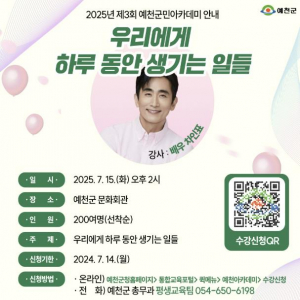 예천군, 작가 차인표 초청 `2025년 제3회 예천군민아카데미` 개최