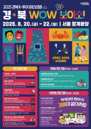 경상북도가 20일부터 22일까지 3일간 서울 청계광장 일대에서 ‘2025 경북 K-투어 페스티벌 IN 서울 – 경북 WOW(와) 보이소!’를 개최한다. 이번 행사는 2025년 경북 경주에서 열리는 AP..