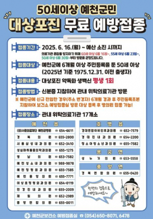 예천군, 50세 이상 대상포진 무료 예방접종 실시