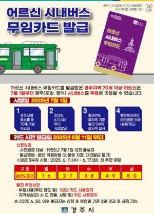 경주시, 11일부터 어르신 시내버스 무임카드 발급 시작