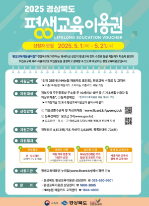 영덕군은 경제적 여건으로 평생학습 참여가 어려운 주민들을 위해 ‘평생교육이용권 지원사업’의 신청을 오는 21일까지 접수한다. 이번 사업은 관내에 주소지를 둔 만 19세 이상 주민 중 △기초생??....