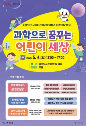 구미어린이과학체험관(구미시립양포도서관 내)은 가정의 달을 맞아 어린이와 청소년을 위한 다양한 과학 체험 행사와 양자물리 교육 프로그램을 진행한다. 5월 4일, `과학으로 꿈꾸는 어린이 세상` ??....
