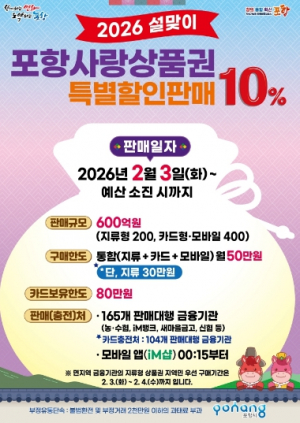 포항시, 설 명절 맞아 포항사랑상품권 600억 원 10% 특별할인 판매