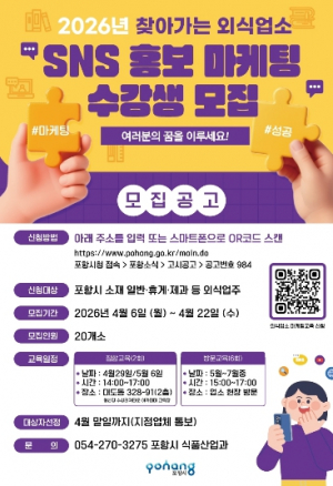포항시, 찾아가는 외식업소 SNS 마케팅 교육 참여 업소 모집